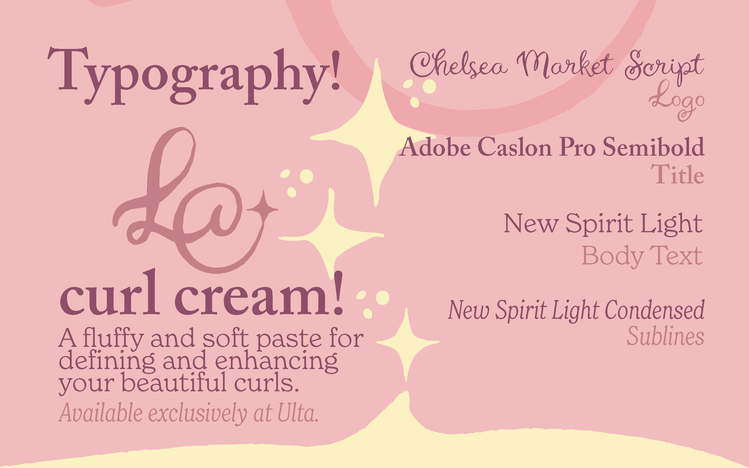 Lucky Curl is a hair-care brand for young girls, ages 7 - 15. This brand aims to make a fun and playful experience out of hair-care for kids with curly and wavy hair. I wanted to design a brand identity that reflected the whimsy, imagination, and charm of childhood, using bright colors and organic shapes that could be eye-catching for kids. This is a personal passion project currently in development.